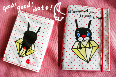 這是鑽石小兔書皮!目前是我做來自己用的,套上筆記本就是專屬隨身小筆記囉!