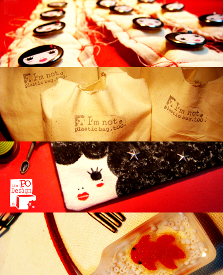 連續兩個周末都是下雨天,更是讓我放棄出去趴里趴里(兜風之意)在家乖乖的做手工。本周的進度還不錯喔~想了很多新東西,尤其是飾品類有不少成品,剛剛也都一一拍的照片,不過我想可能那麼早曝光不太好(想防誰阿~這裡人氣那麼差),本來承諾好友要登新品照的,現在可能只放個一兩張吧~乖齁~來會場就可以看到拉!!對了~可愛的織標已經訂製完成,特地花兩千多塊印製兩色的織標(多一色多不少錢),但是成品效果非常棒,以後請認明蜜絲波小姐圖案的[PO.Design]商品就對啦!!